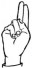На ћирилици написано ИВОНА КЛЕМЕНОВИЋ састоји се из 15 слова [?]. Исписано ћириличном једноручном азбуком за глувонеме: